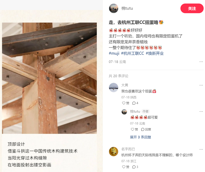 【無印良品の中国杭州店の「斗拱」、RED(小紅書)より】